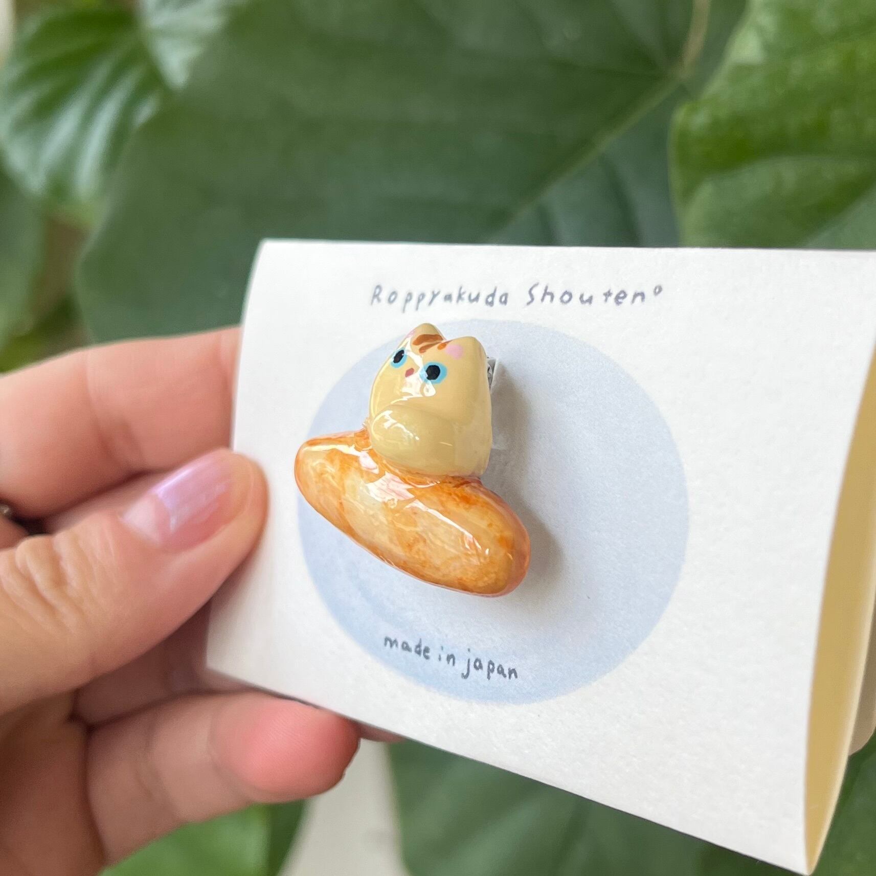 六百田商店゜/パンに乗るねこさんブローチ⑤