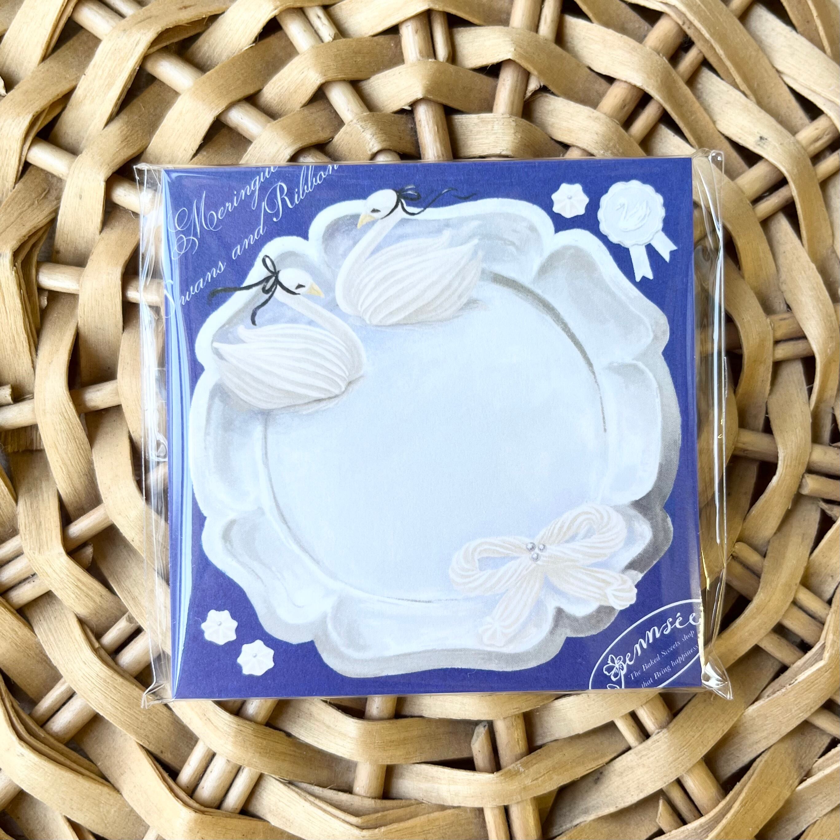 たていわぬい/ミニメモ(白鳥とリボンのメレンゲクッキー)